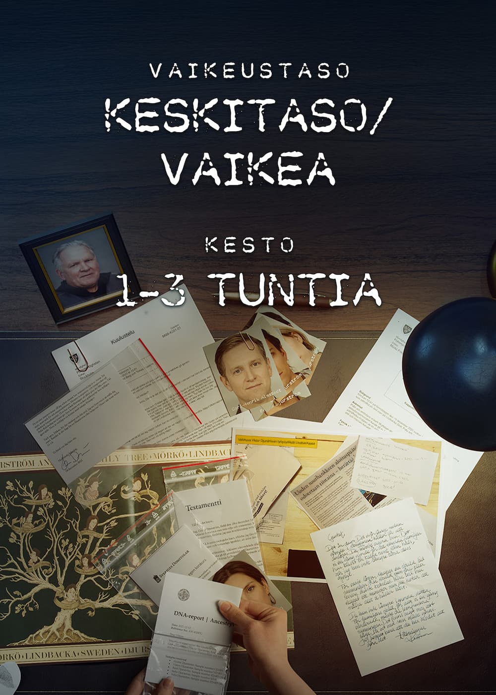 Helppo aloittaa! Lue tapauksen johdanto, tutustu aineistoon ja yritä selvittää, kuka murhaaja on!